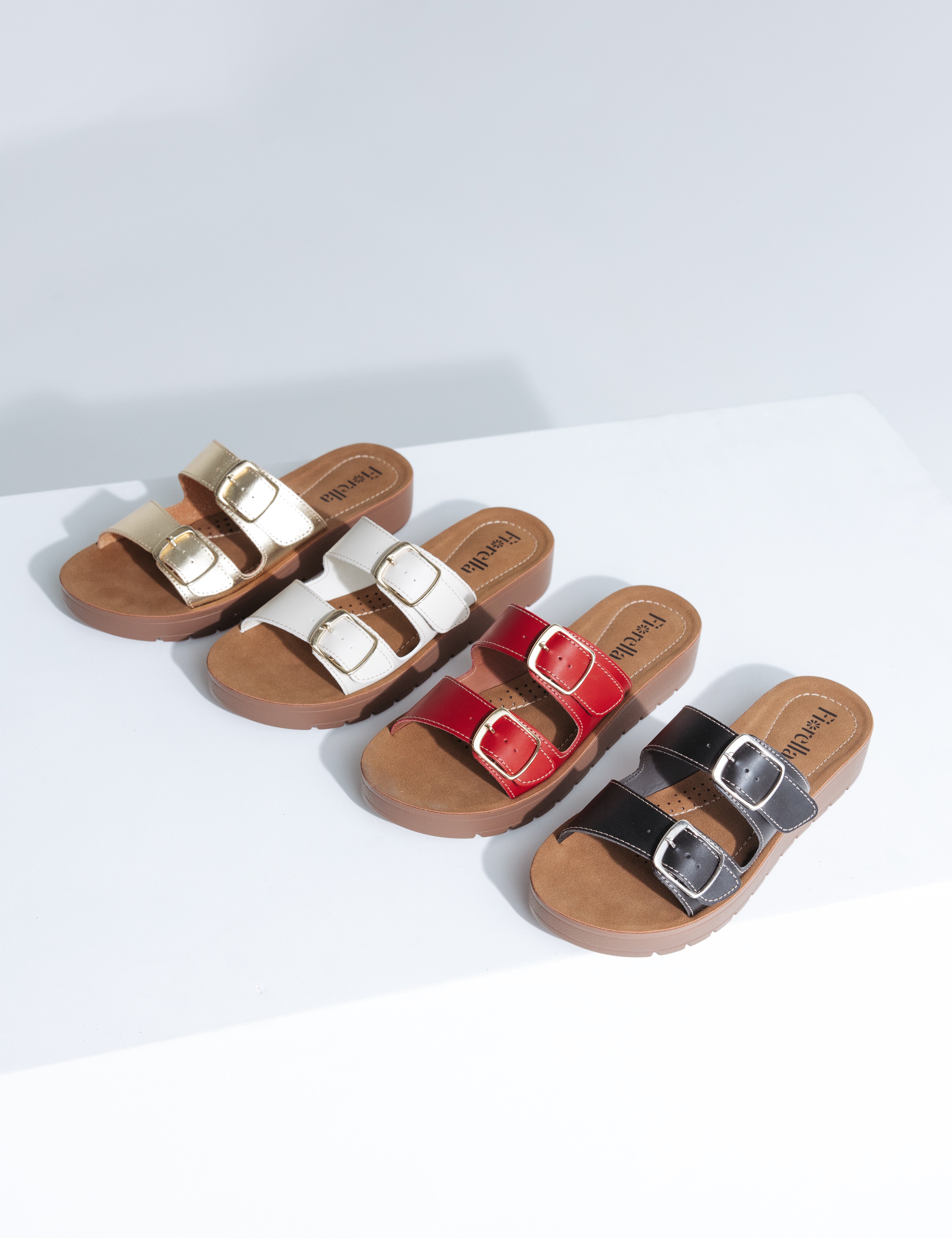 STUDDED DOUBLE-BUCKLE SANDAL TAN