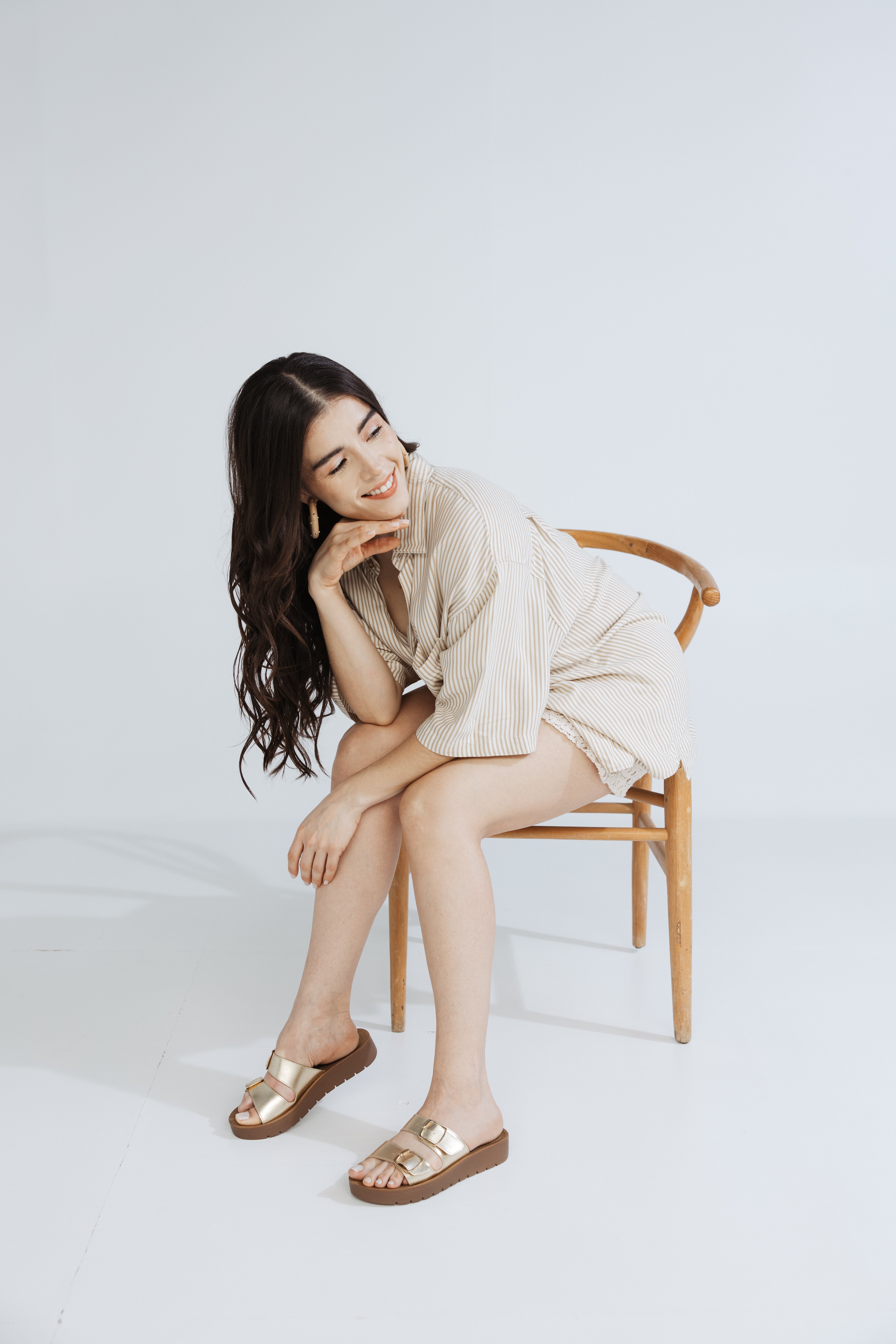 DOUBLE-BUCKLE SLIDE GOLDVendor:FIORELLA