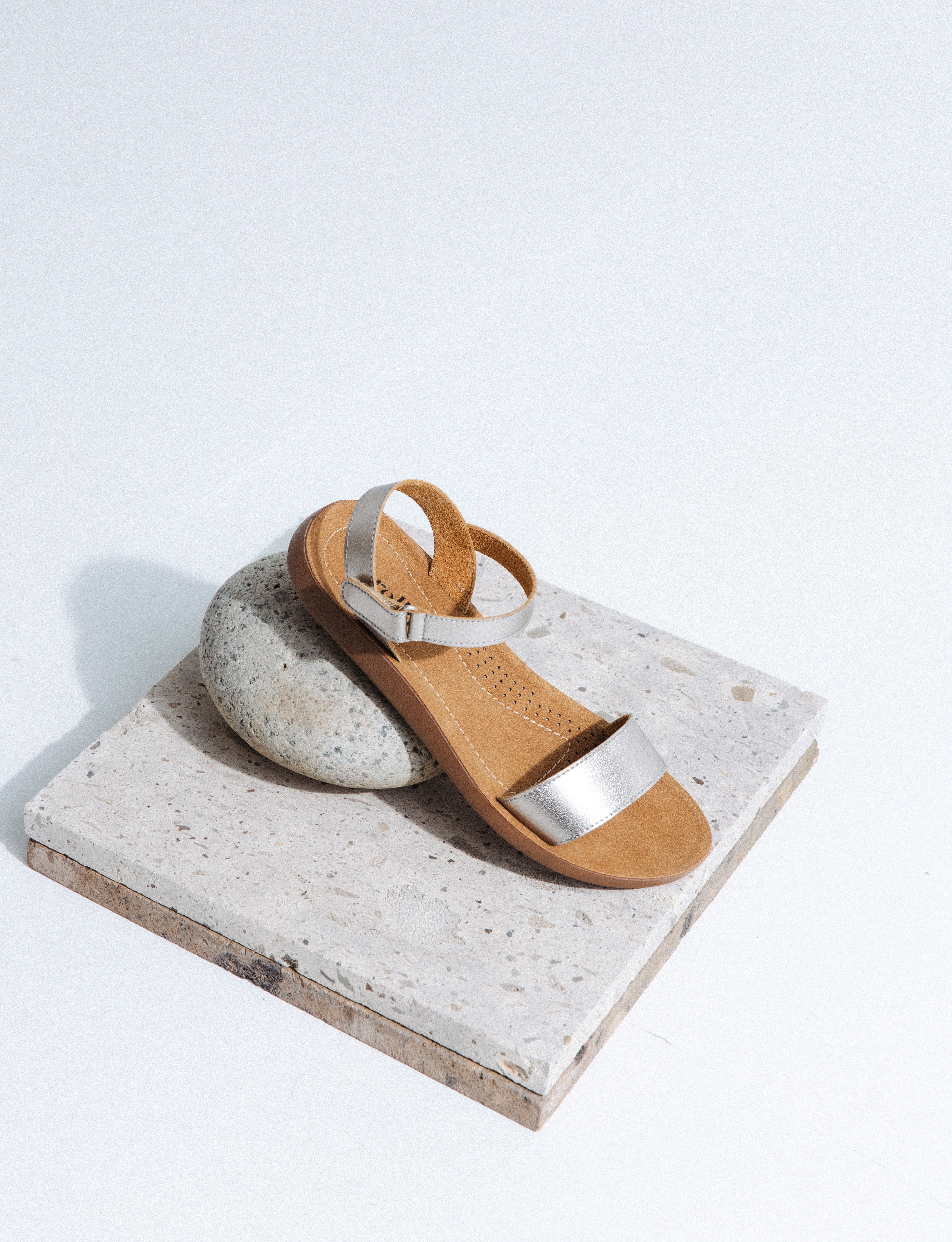ANKLE STRAP SANDAL METALLIC SILVER -