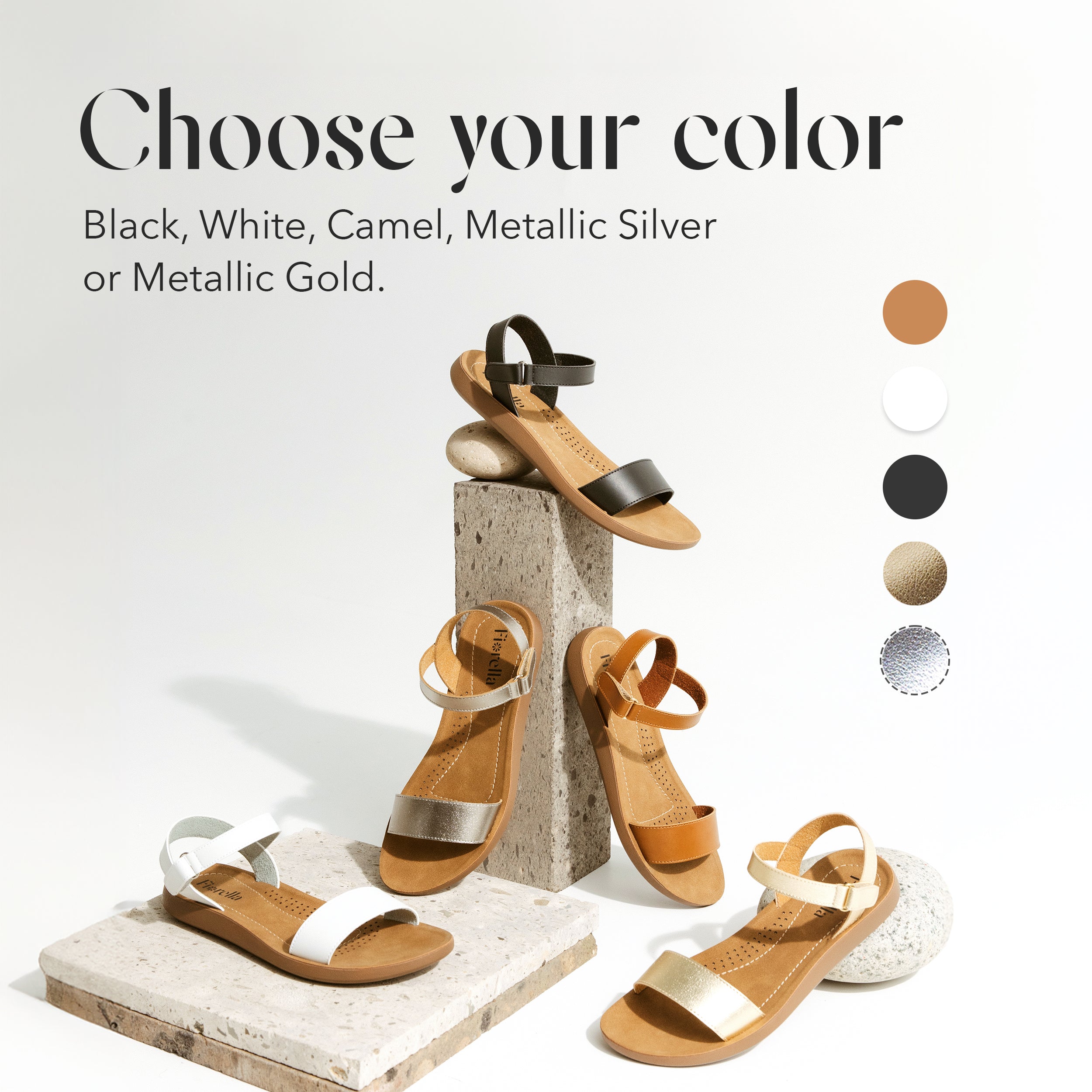 Lightweight and comfy, these sandals feature a cushioned EVA footbed and flexible sole for easy steps all day. The soft vegan upper with breathable lining feels great and cleans easily, while the adjustable ankle strap keeps them secure. With a sleek two-strap design that pairs with everything from jeans to dresses, they’re perfect for summer walks, travel, or errands—and they pack flat so you can take them anywhere. Available in five colors, women’s US sizes 6–10.
