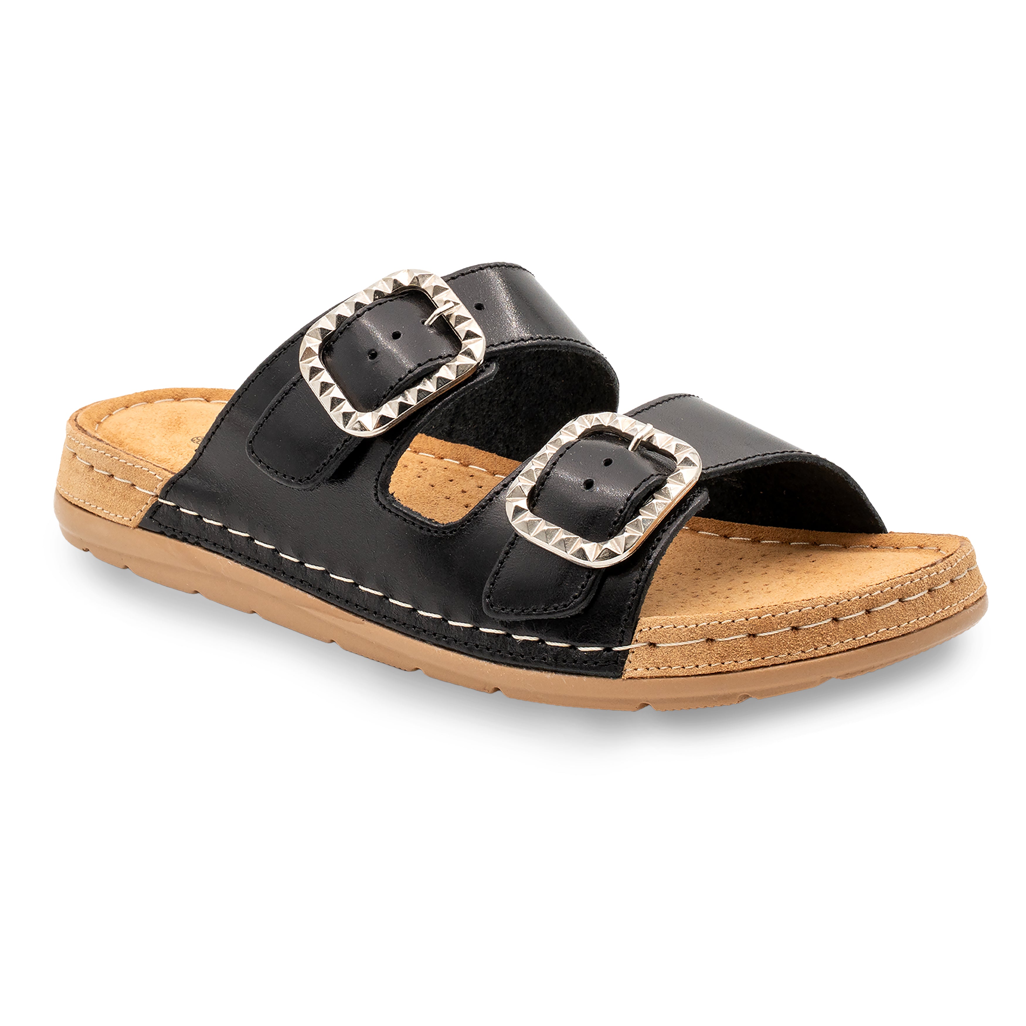 STUDDED DOUBLE-BUCKLE SANDAL BLACK